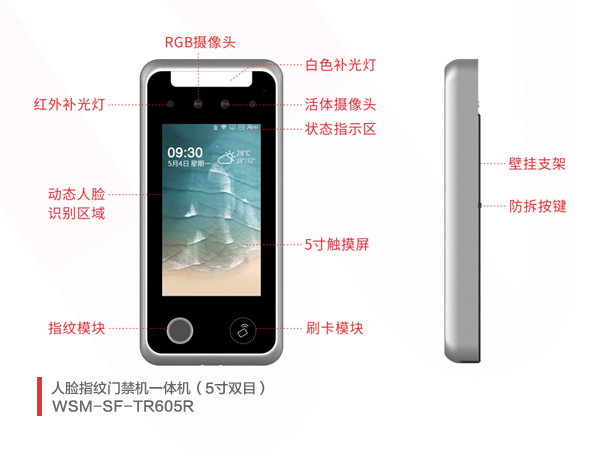 本品是一款高性能嵌入式人脸识别一体机,产品支持壁挂安装。它集成了人脸识别、指纹识别、人卡比对、批量人脸导入、黑名单预警、人过留影、语音对讲等功能为一体。采用宽动态高清人脸识别摄像头,具有识别速度快、活体检测、准确率高等特点。外观精致、多元化设计,强大的管理功能,可搭配人脸门禁考勤管理系统、智慧社区管理系统使用,完美适用于企业办公写字楼、办公厂区、政府办公楼、校园等需要进行身份识别和考勤的应用场景。
